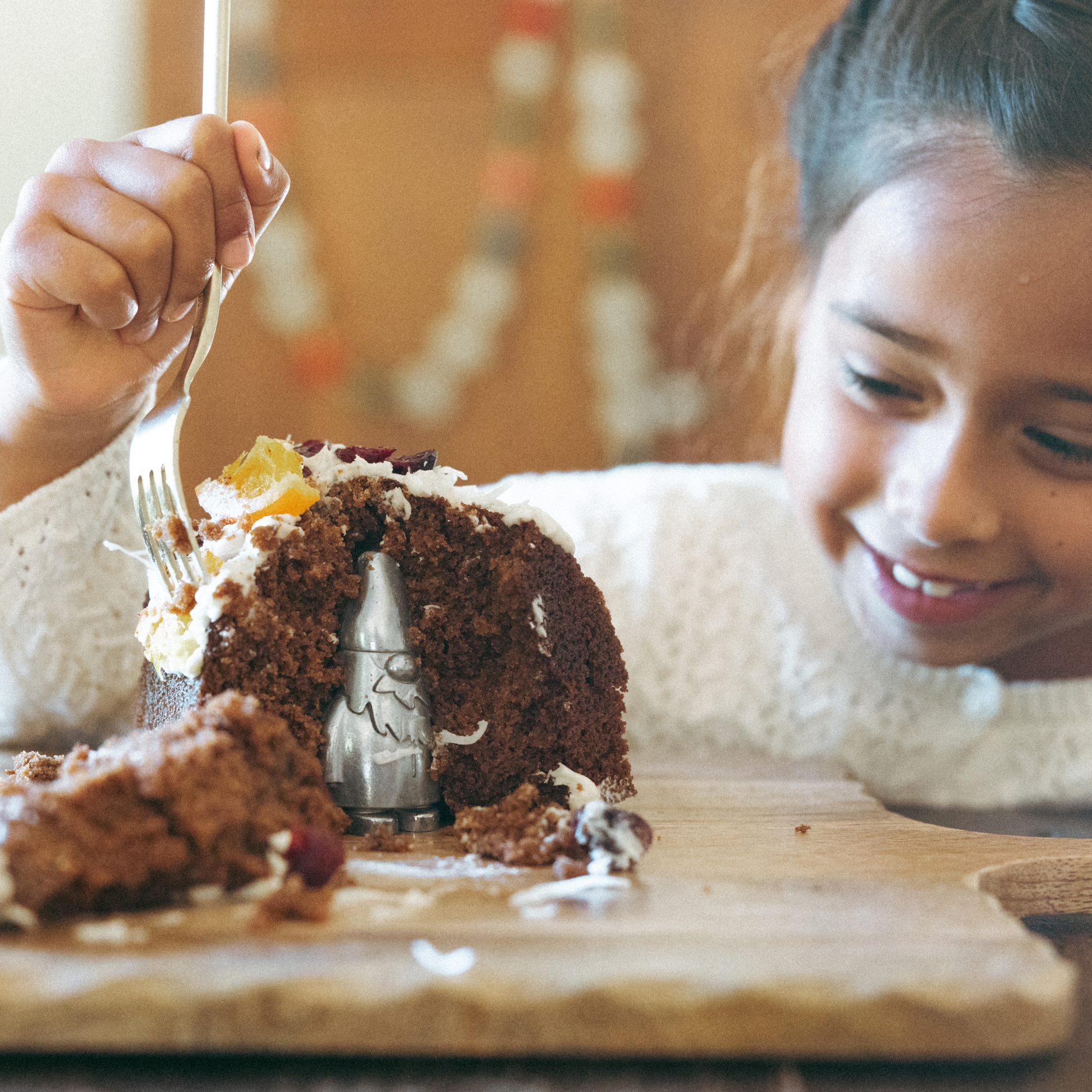 Based on an original new children’s story about a mischievous gnome who accidentally falls into cake batter and gets baked into a gingerbread cake, this three-piece set has everything you need to recreate the storyline with your family and bring joy back into this beloved tradition.